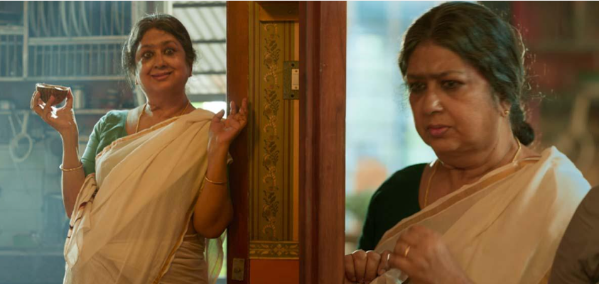 The film begins with the visuals of the Bharathanatyam drawing the audience closer to the characters and their story. Rukmini played by the renowned dubbing artist Sreeja Ravi and her son Ajay Ghosh (Jivin Rex) have moved to a new house at Sreekandapuram with the support of Sasidharan Nair (Saiju Kurup), his mother Saraswathi (Kalaranjini) and their family. The house is near to the renowned Aryankavu Mohiniswari temple which plays a major role in the narrative. The members of the family comprising Sasi’s sisters and in-laws are quite happy with the fresh beginning and they stay with Rukmini amma to set things right in the new place. The story takes a new turn with the introduction of Govindaraja (superbly portrayed by Suraj Venjaramoodu), a ruthless man who comes to meet Rukmini amma. He claims to be a close associate of Bharathan Nair, along with two others (Santhosh and Nishthar Sait). Through Govindaraja, the audience get to know another ‘Bharathanatyam’ (drama/play of Bharathan Nair) which is quite a shocking one leading to ‘Mohiniyattam’ (Mohini’s play). Govindaraja demands a hefty sum from Rukmini amma and her family to avoid defaming of Bharathan Nair pushing them into a crisis. From this point onwards, the film transforms into an edge-of-the-seat thriller, as the family tries to escape from the quagmire offering numerous moments to laugh, cheer and feel satisfied. As the narrative includes several twists and turns, I refrain from revealing further details.